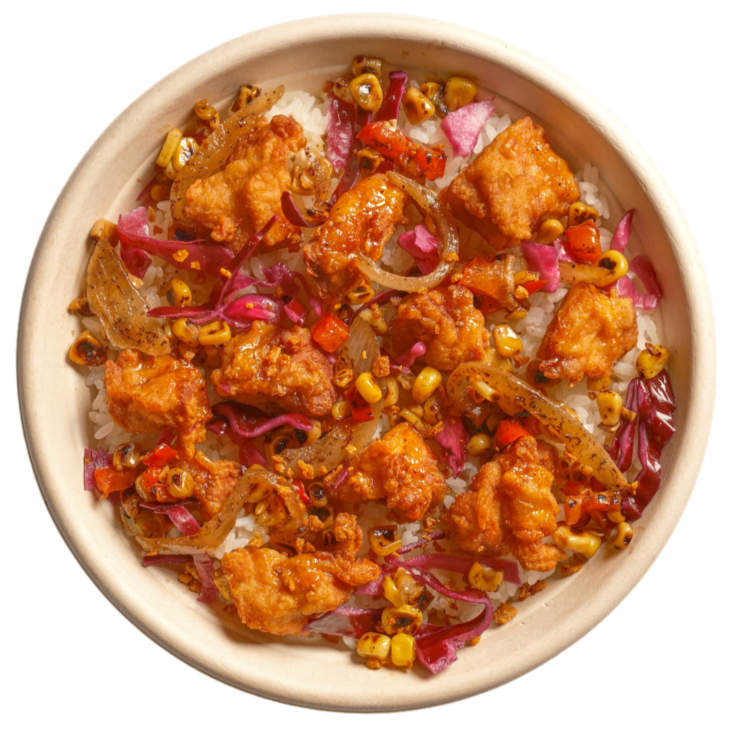 Red Cabbage Slaw, Charred Corn, Grilled Onion, Crispy Shallots, Soy Garlic Sauce