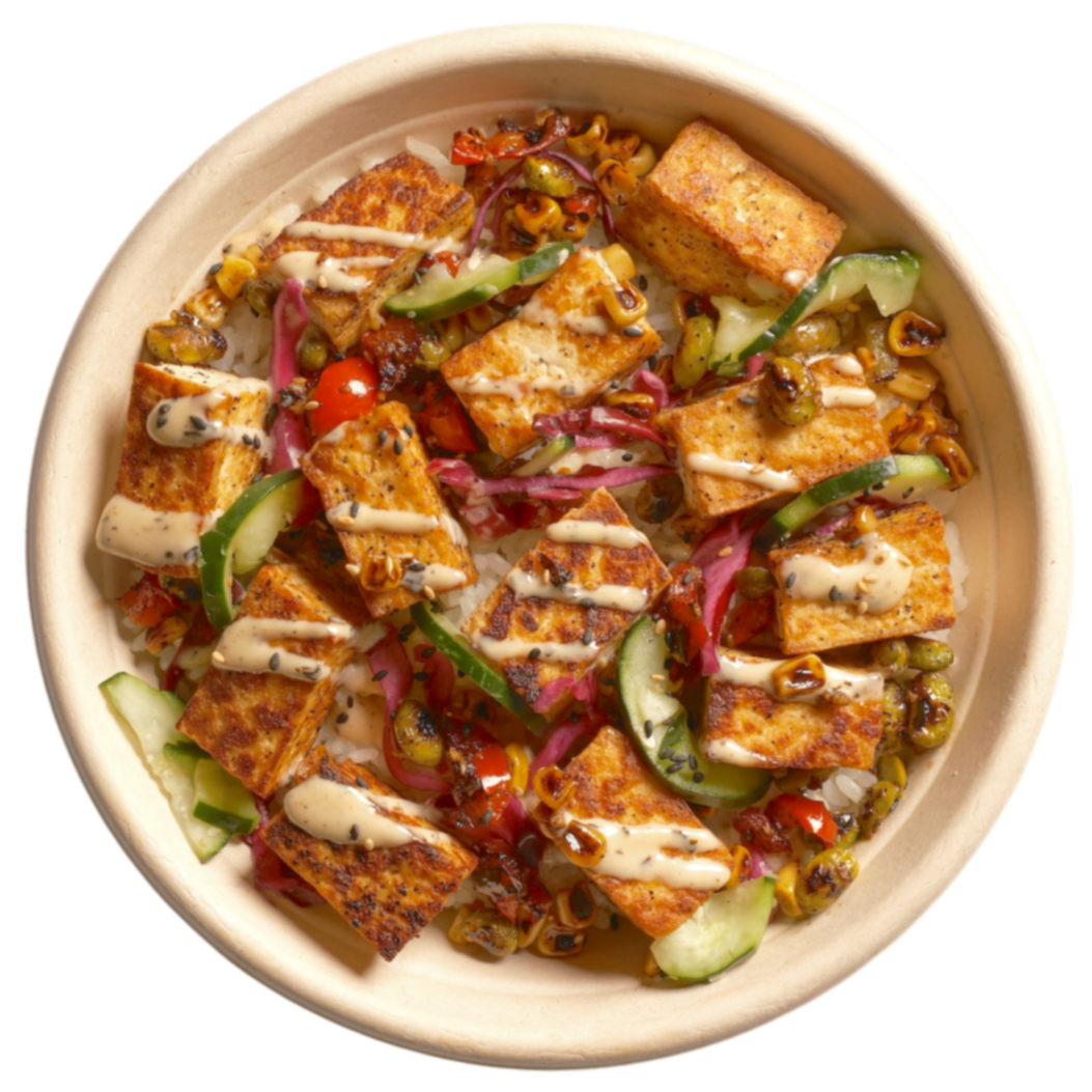 Grilled Edamame, Cucumber Pickles, Red Cabbage Slaw, Charred Corn, B&W Sesame Seeds, Yuja Ponzu Sauce